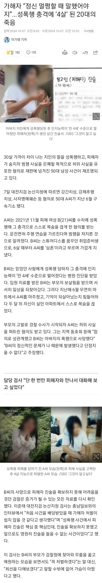 가해자 “정신 멀쩡할 때 말했어야지”...성폭행 충격에 ‘4살’ 된 20대의 죽음