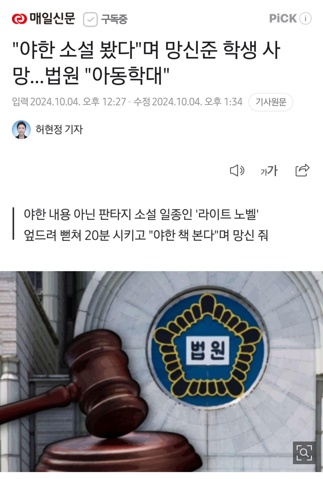 도덕 교사가 학생에게 '야한 소설'이라고 망신 주어 자살로 이끈 사건, 대법원서 징역형 집행유예 확정