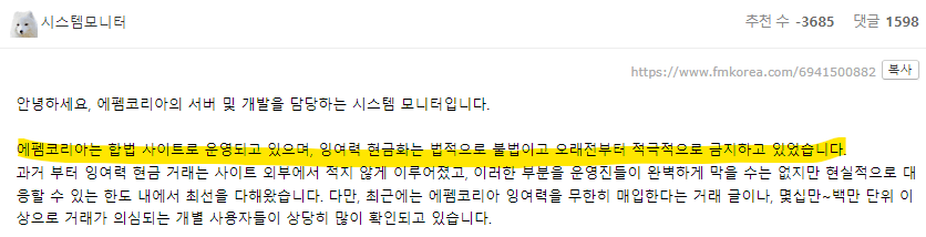 잉포 개인 거래 막은 이유가 뭐겠음재화로 보지 않겠다는 거지