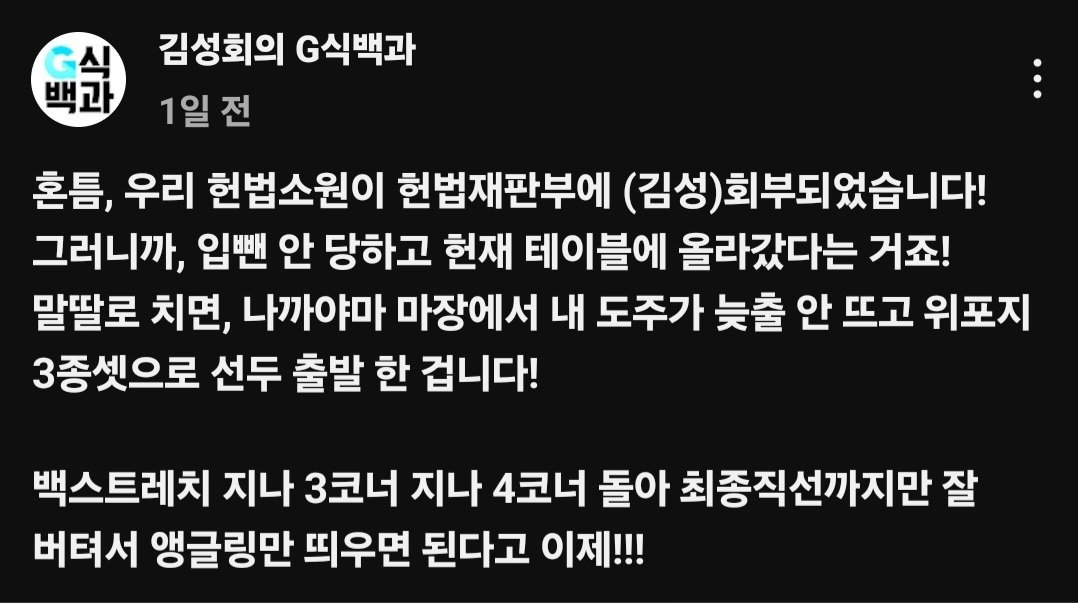 G식백과 김성회 외 210,720명이 함께한 헌법소원 위헌심판 청구 근황