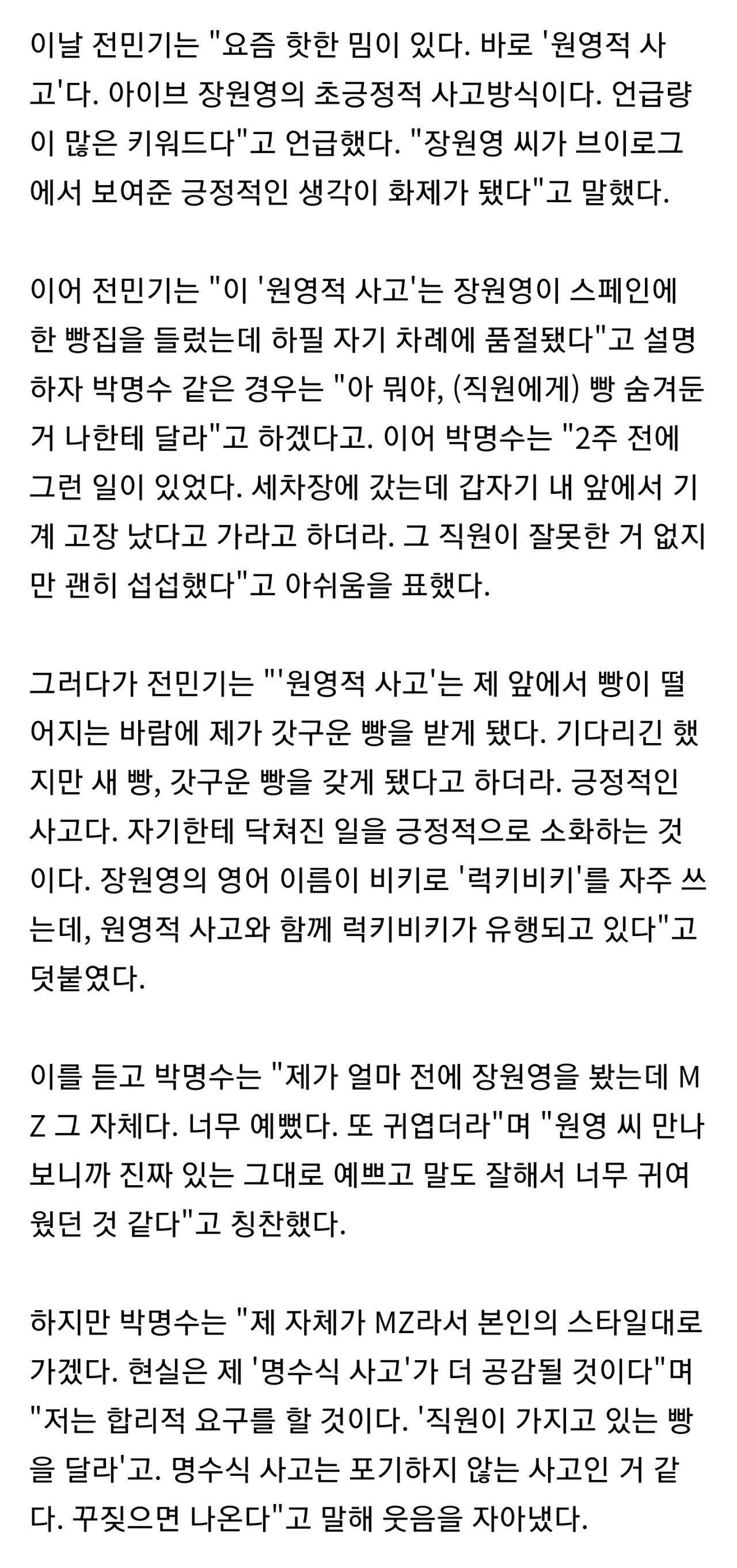 ‘원영적 사고’보단 ‘명수식 사고’가 현실적으로 더 공감 된다