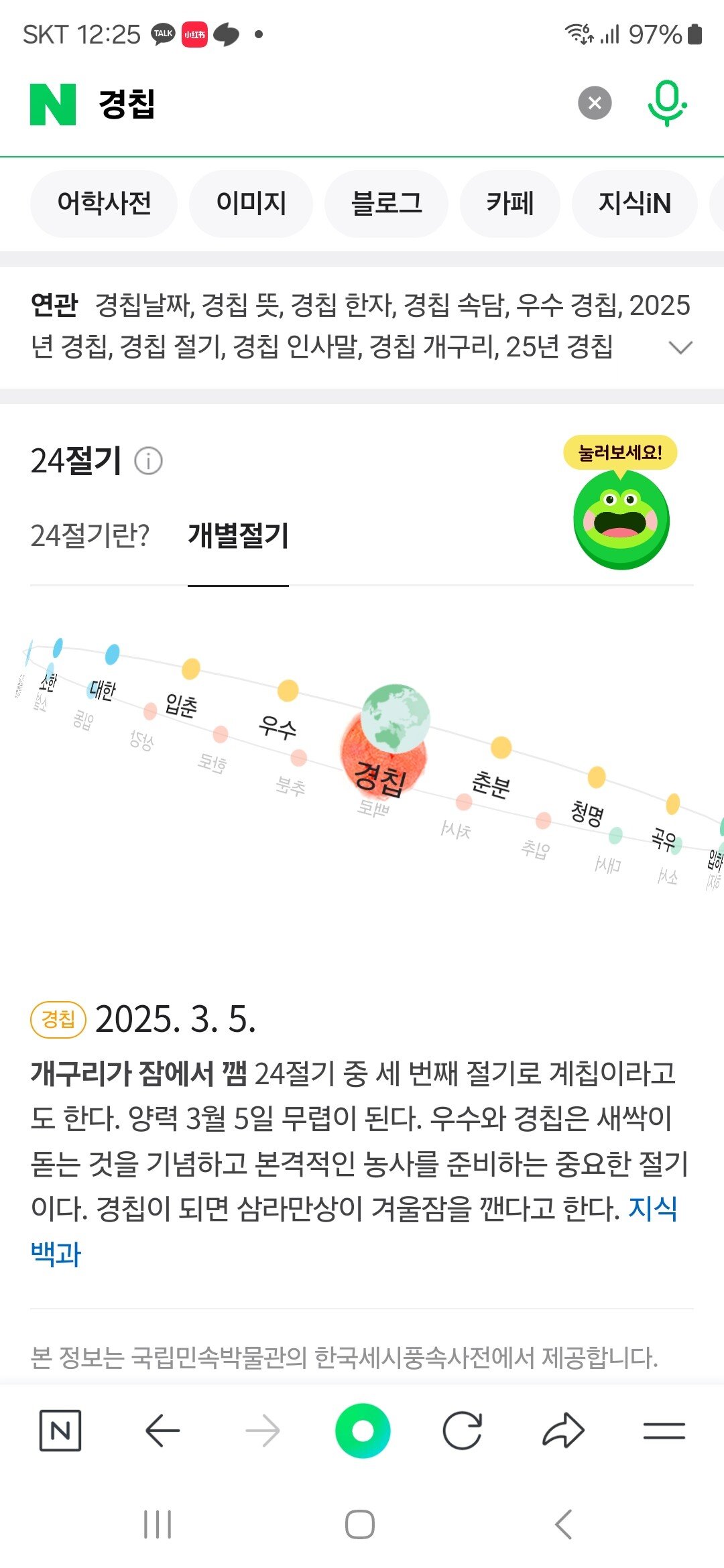 오늘은 개구리가 겨울잠에서 깨어나는 날입니다