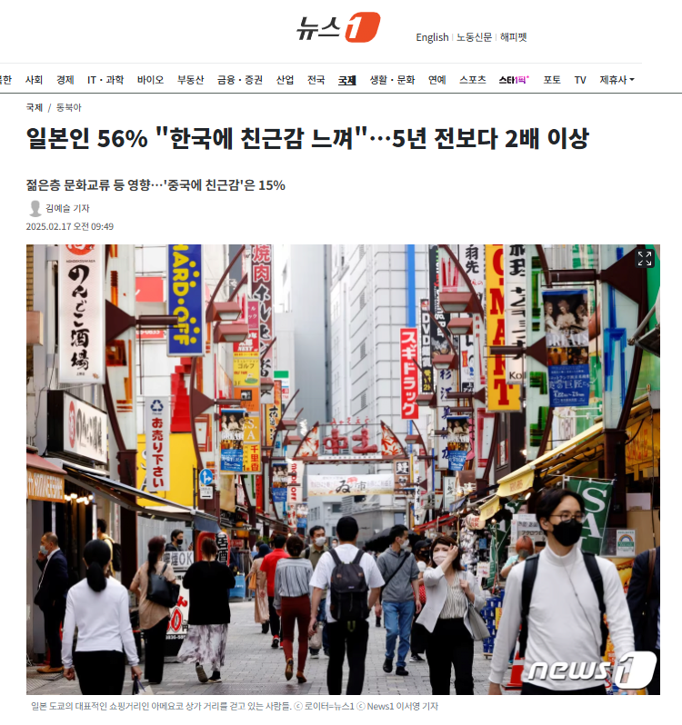 일본인 56% "한국에 친근감 느껴"…5년 전보다 2배 이상