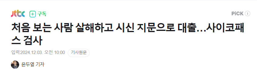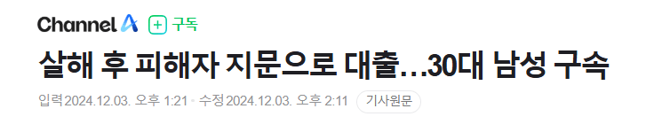 처음 보는 사람 살해하고 시신 지문으로 6천만원 대출