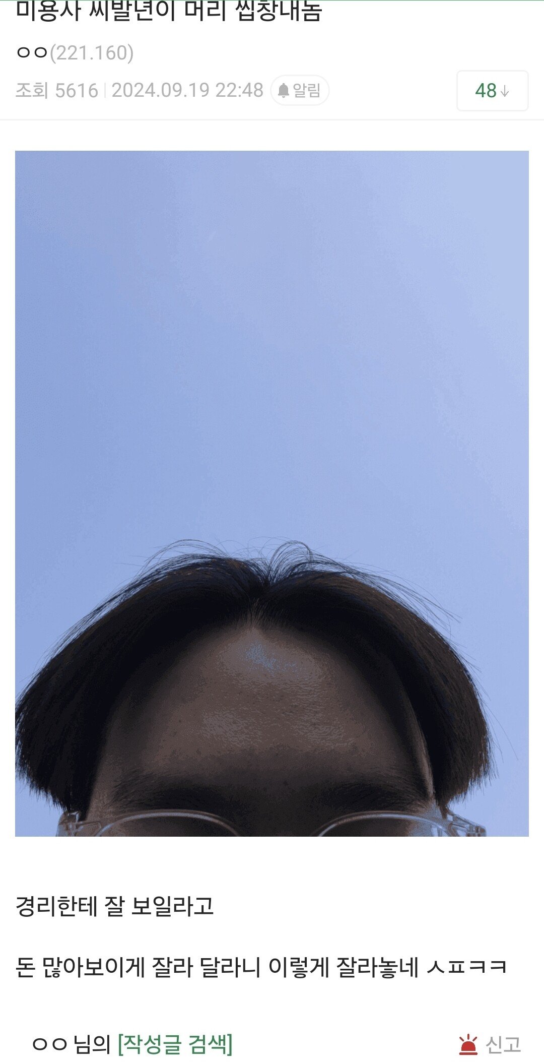 훌쩍훌쩍... 좆소갤 머리 망한 중붕이