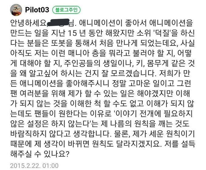 씹덕들 요구가 이해안된다는 애니 창작자 ㄷㄷㄷ