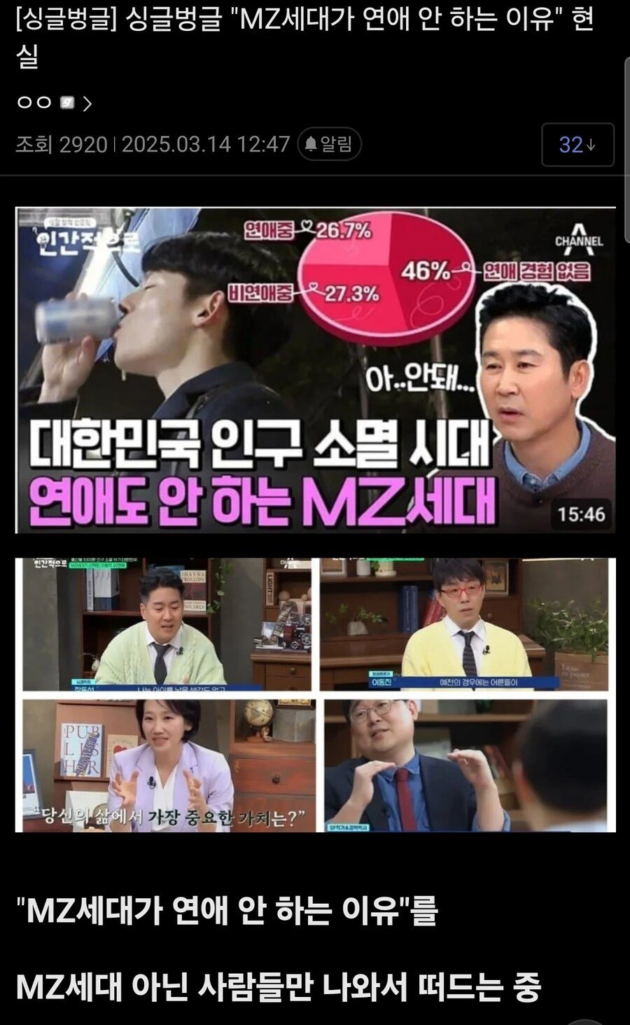 MZ세대가 연애 안하는 이유 현실