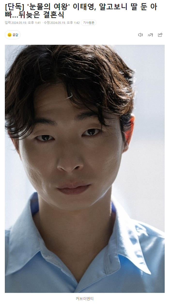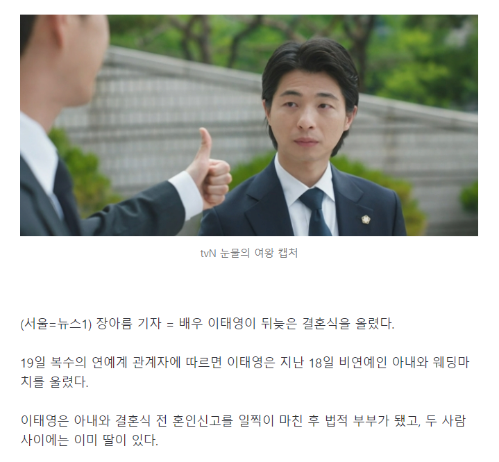 [단독] '눈물의 여왕' 이태영, 알고보니 딸 둔 아빠…뒤늦은 결혼식