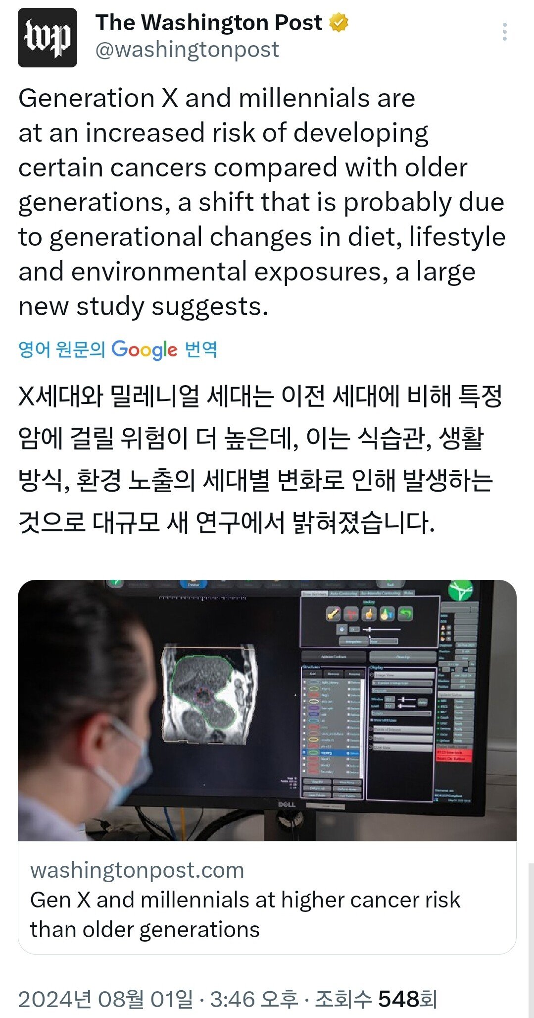 가장 흔한 암 34개 중 17개의 암 발병률이 점점 더 젊은 세대에서 증가하고 있으며