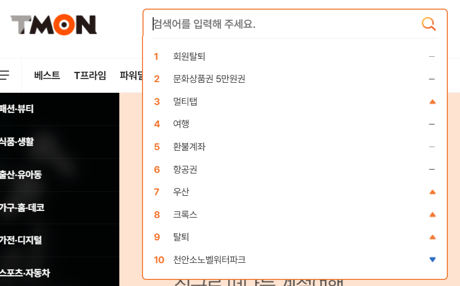 티몬 검색창 실시간 검색어 순위