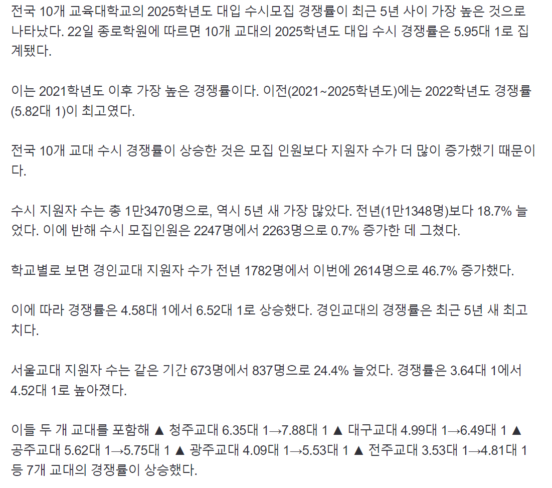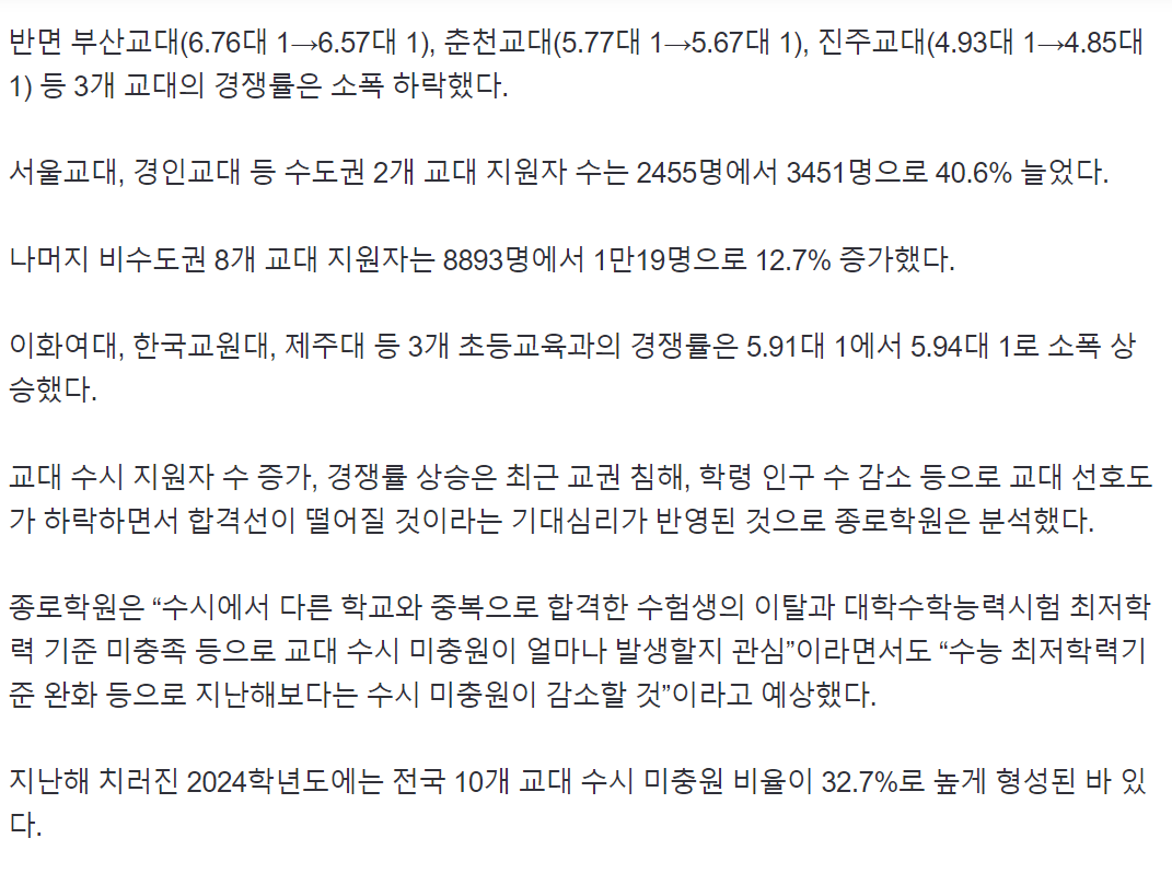 “초등교사 인기 떨어졌다니 이때다”...전국 교대 수시 경쟁률, 5년 새 최고