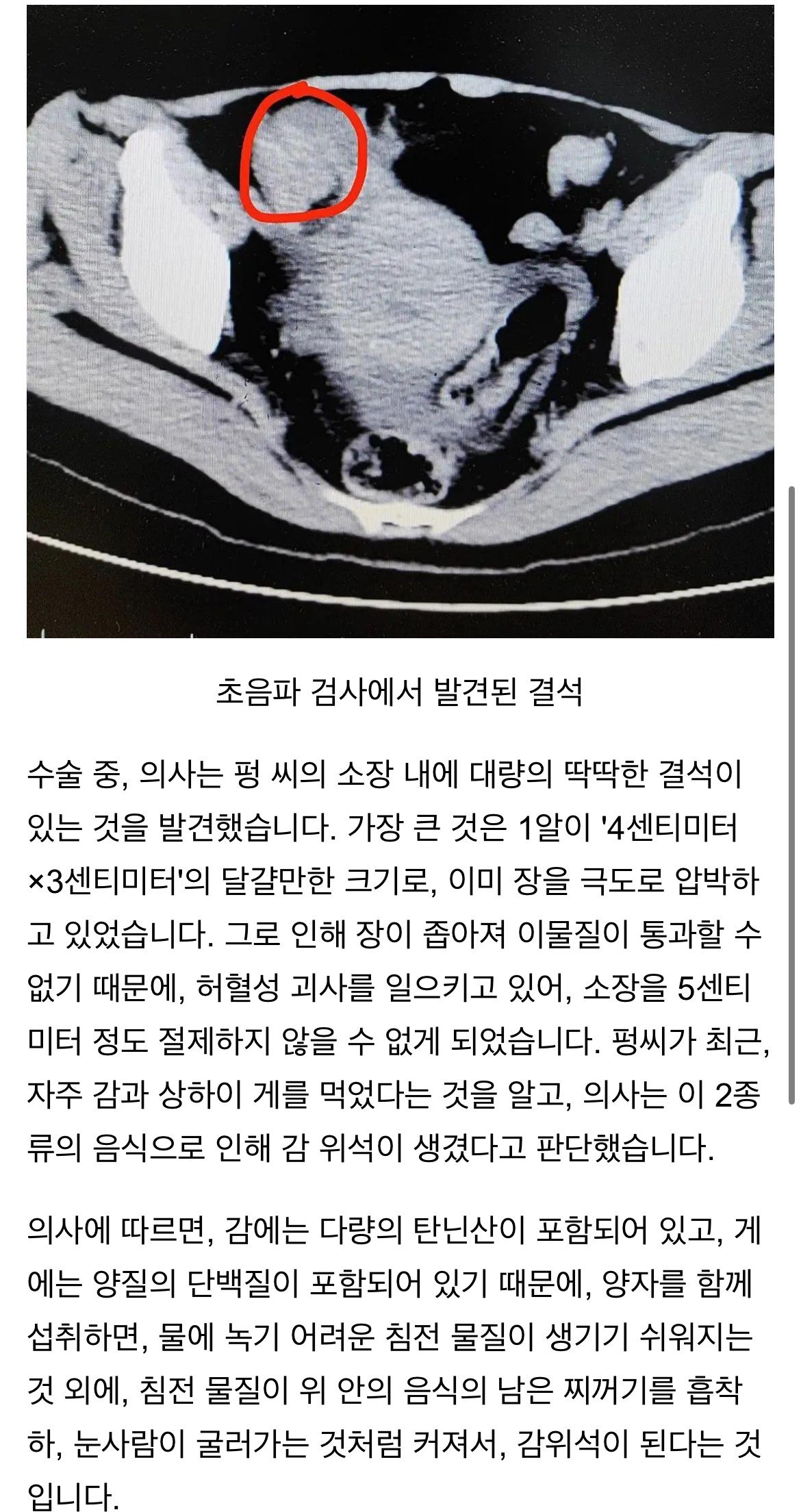 게와 감을 먹고 급성 장폐색으로 죽을뻔한 중국인