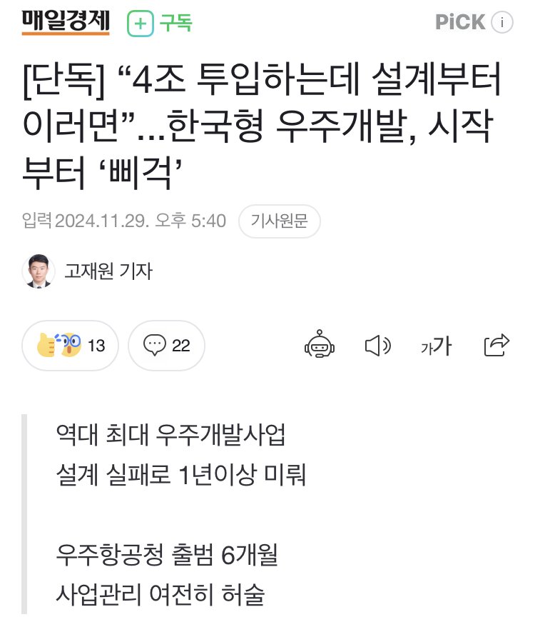 과학기술계에서는 우주항공청 출범 반 년이 넘었지만 여전히 사업관리체계에 구멍이 뚫렸다고 지적했다.