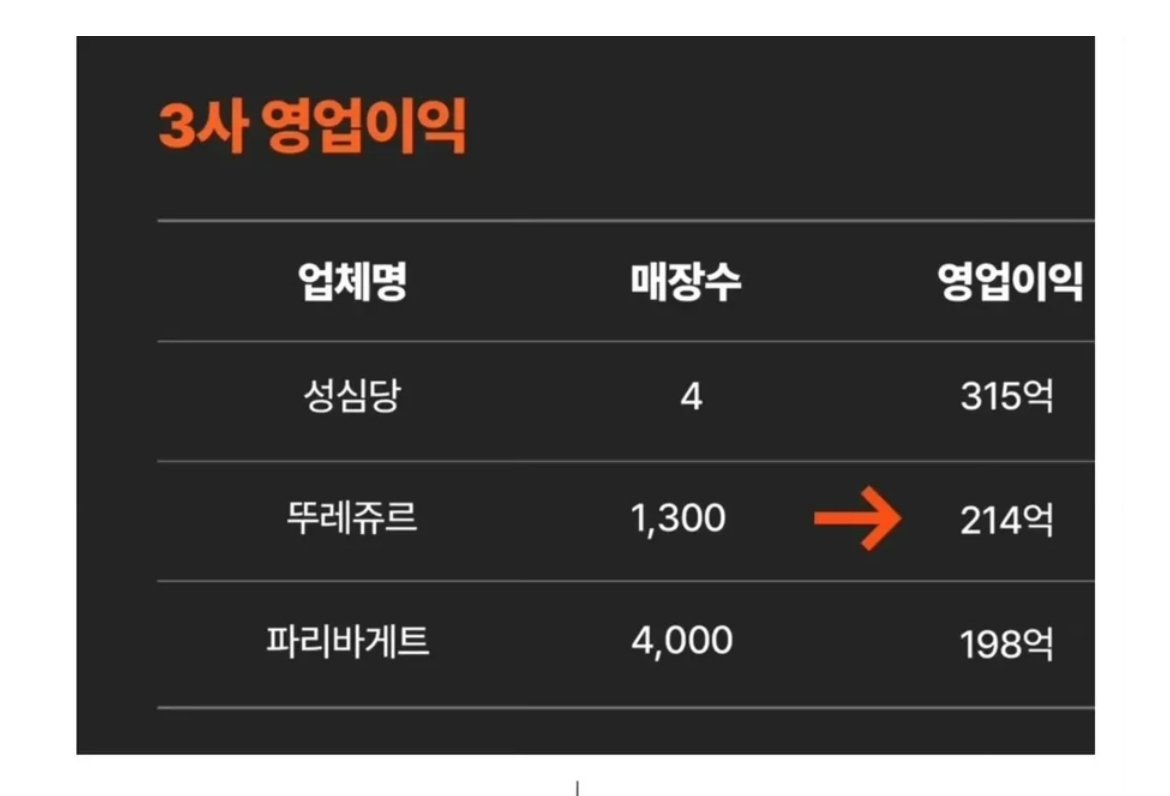 한국 빵집 매장당 영업이익이 가장 높은 업체 ㅎㄷㄷㄷ