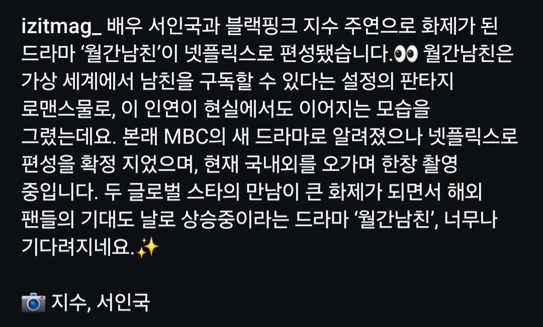 지수X서인국 주연 "월간남친" 넷플릭스 편성 확정