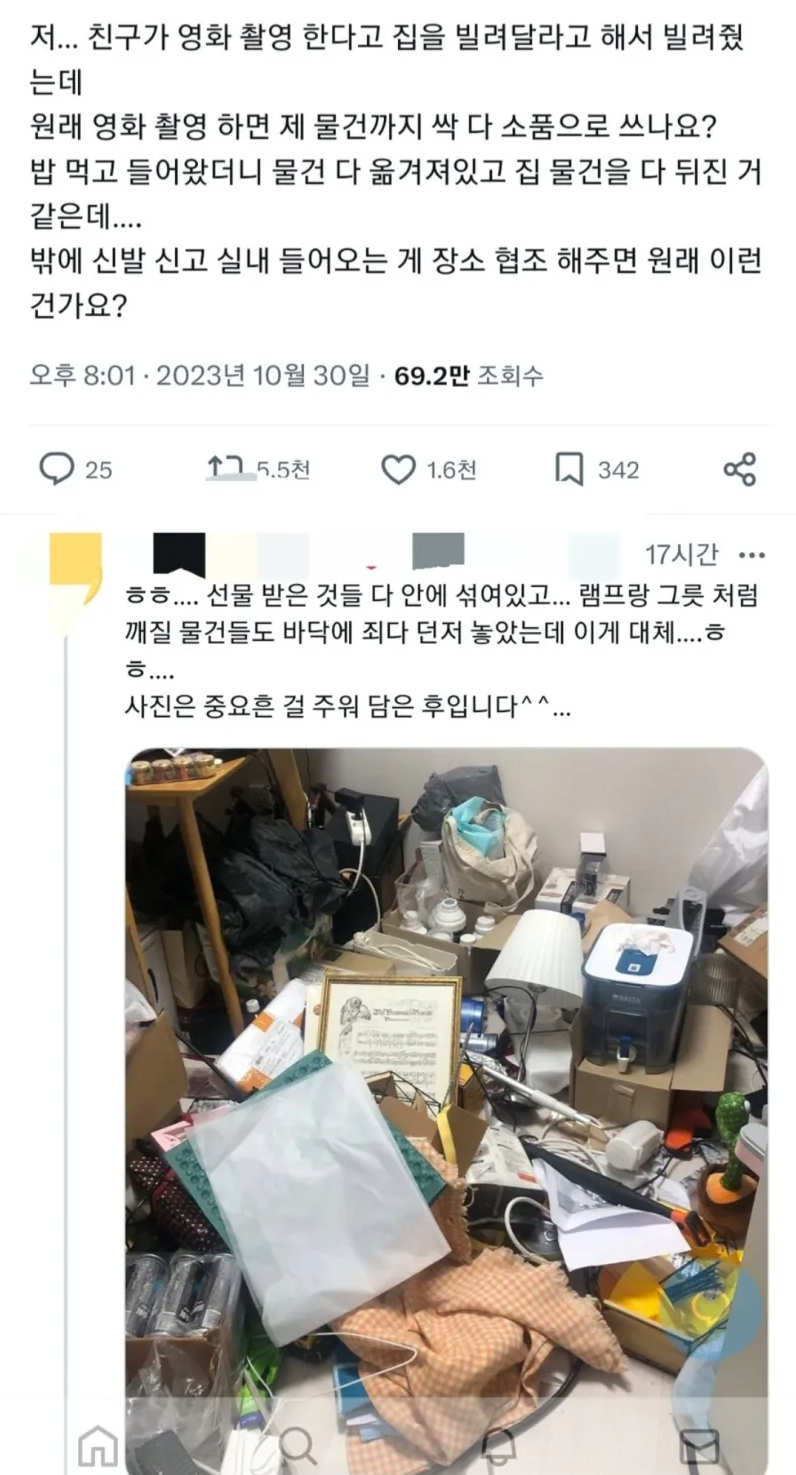 영화 촬영한다는 친구에게 집 빌려줬더니.... jpg