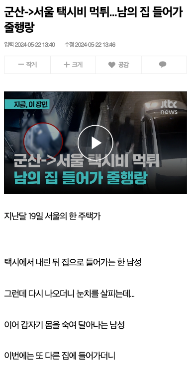 군산->서울 택시비 35만원 먹튀한 놈.news