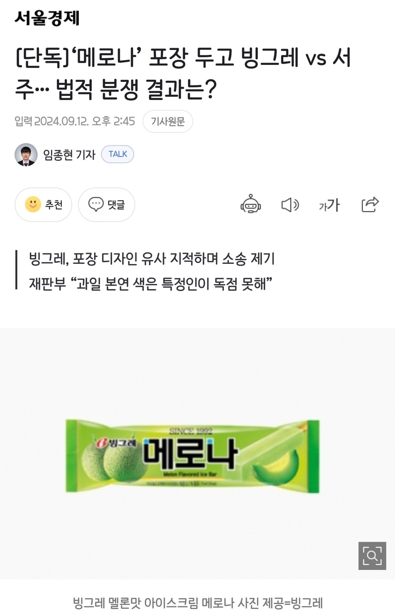 [단독]‘메로나’ 포장 두고 빙그레 vs 서주… 법적 분쟁 결과는?