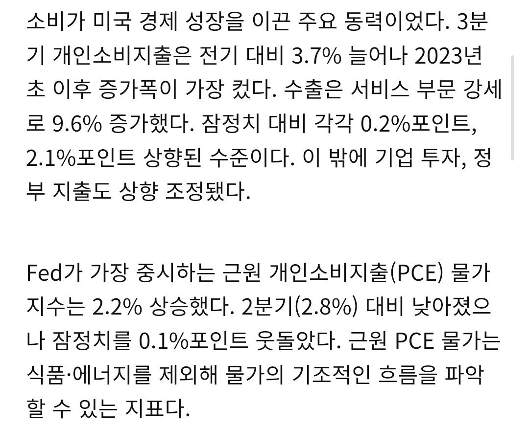 소비랑 서비스 수출 증가로 3분기 성장률 3.1% 로 상향.