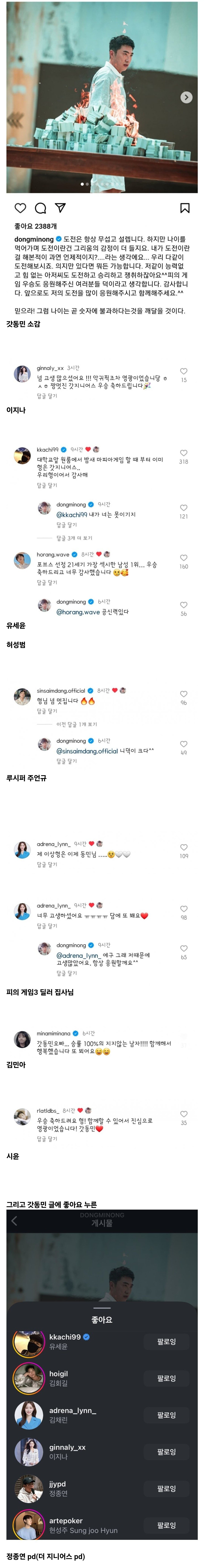 장동민 인스타 (피의게임3 소감)