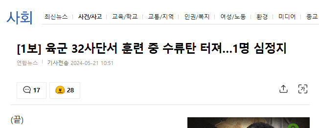 [1보] 육군 32사단서 훈련 중 수류탄 터져…1명 심정지