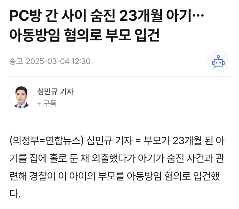 23개월 아기 사망, 부모는 PC방에....