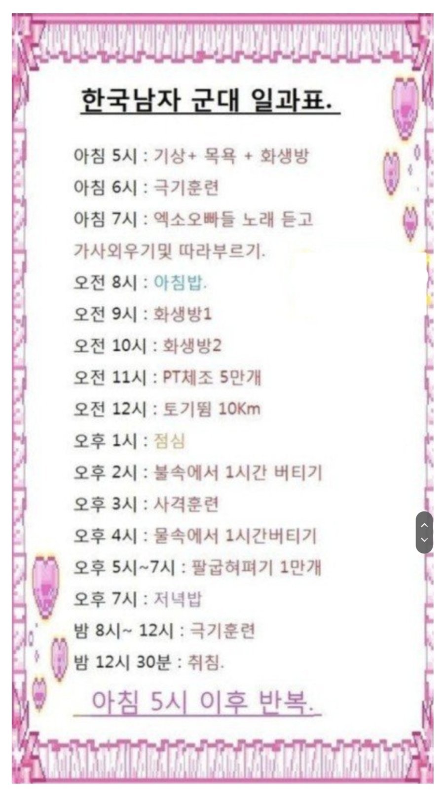 언냐들이 바라는 한국남자 군대 일과표