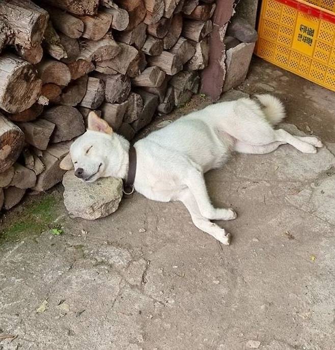 할아버지가 "백구가 사람인가벼?" 라며 보내 온 사진