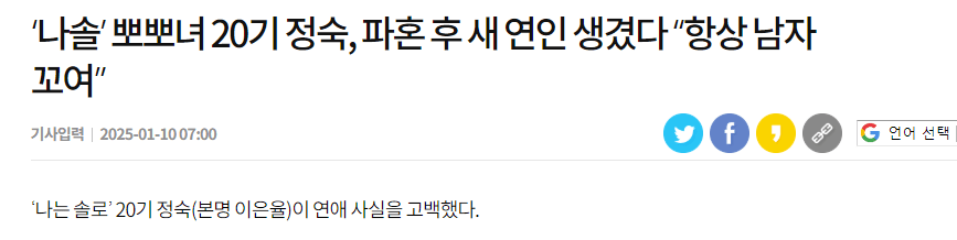 ‘나솔’ 뽀뽀녀 20기 정숙, 새 연인 생겼다 “항상 남자 꼬여”