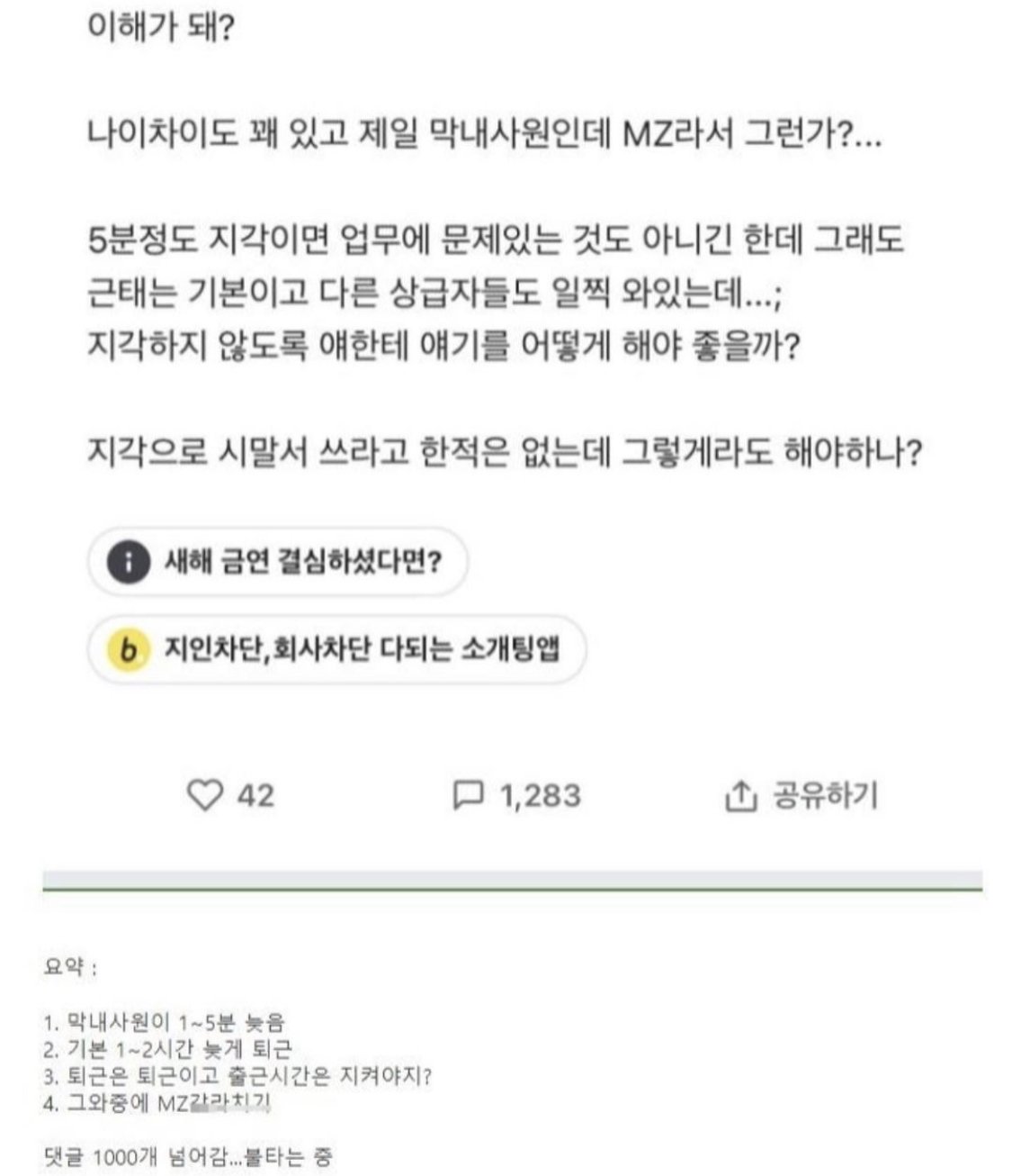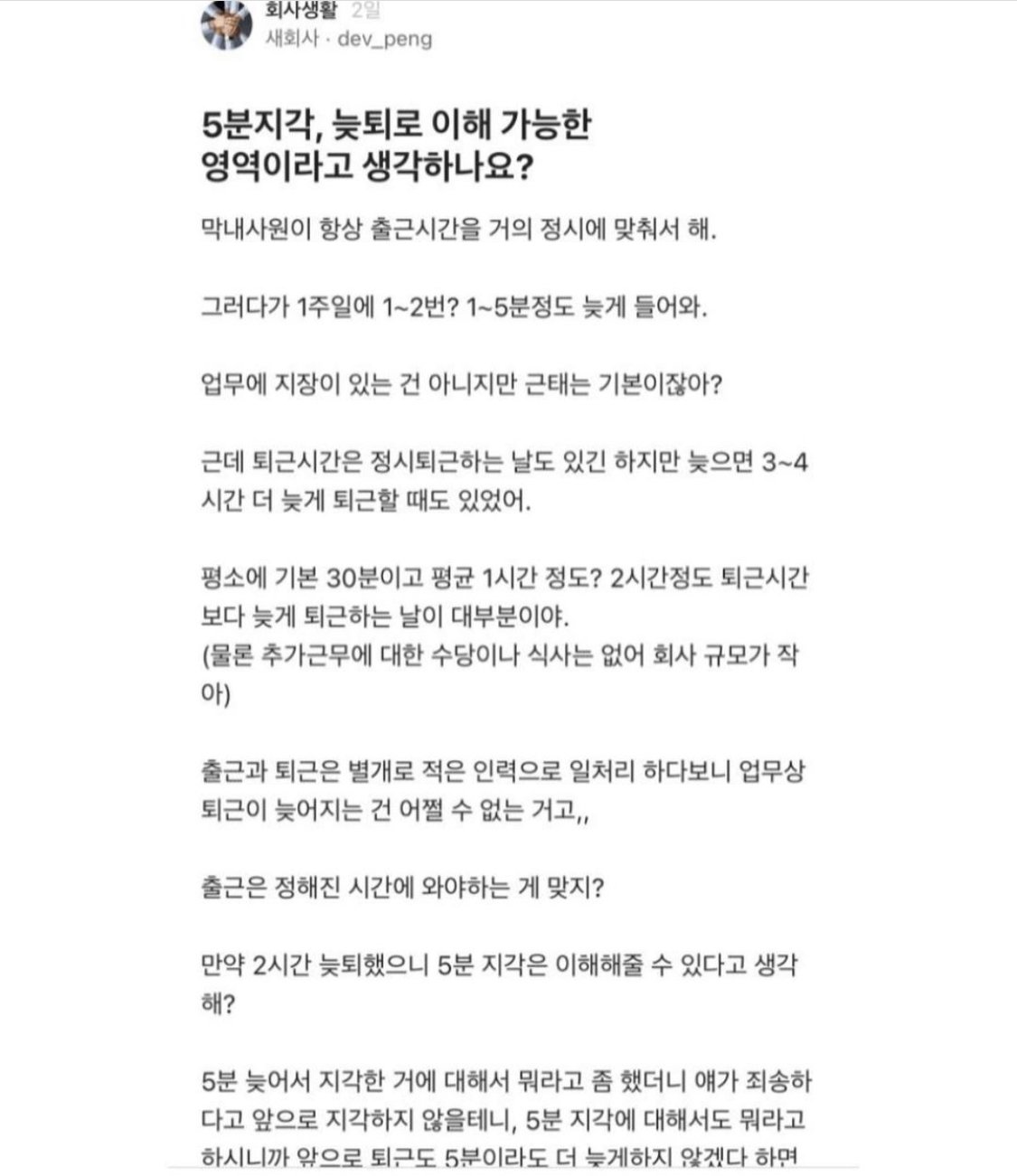 5분 지각, 늦퇴 이해 가능한 영역인가요?...JPG