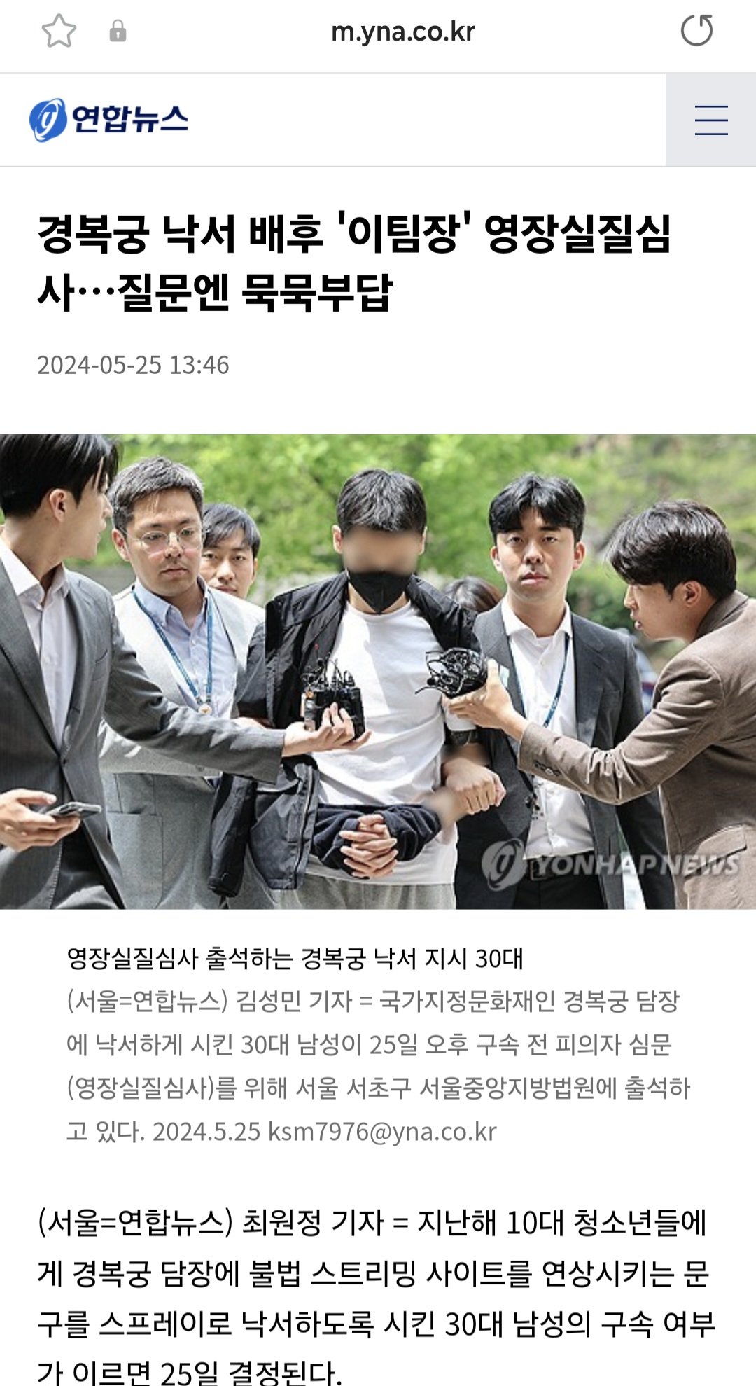 경복궁 낙서 배후 '이팀장' 구속심사 출석