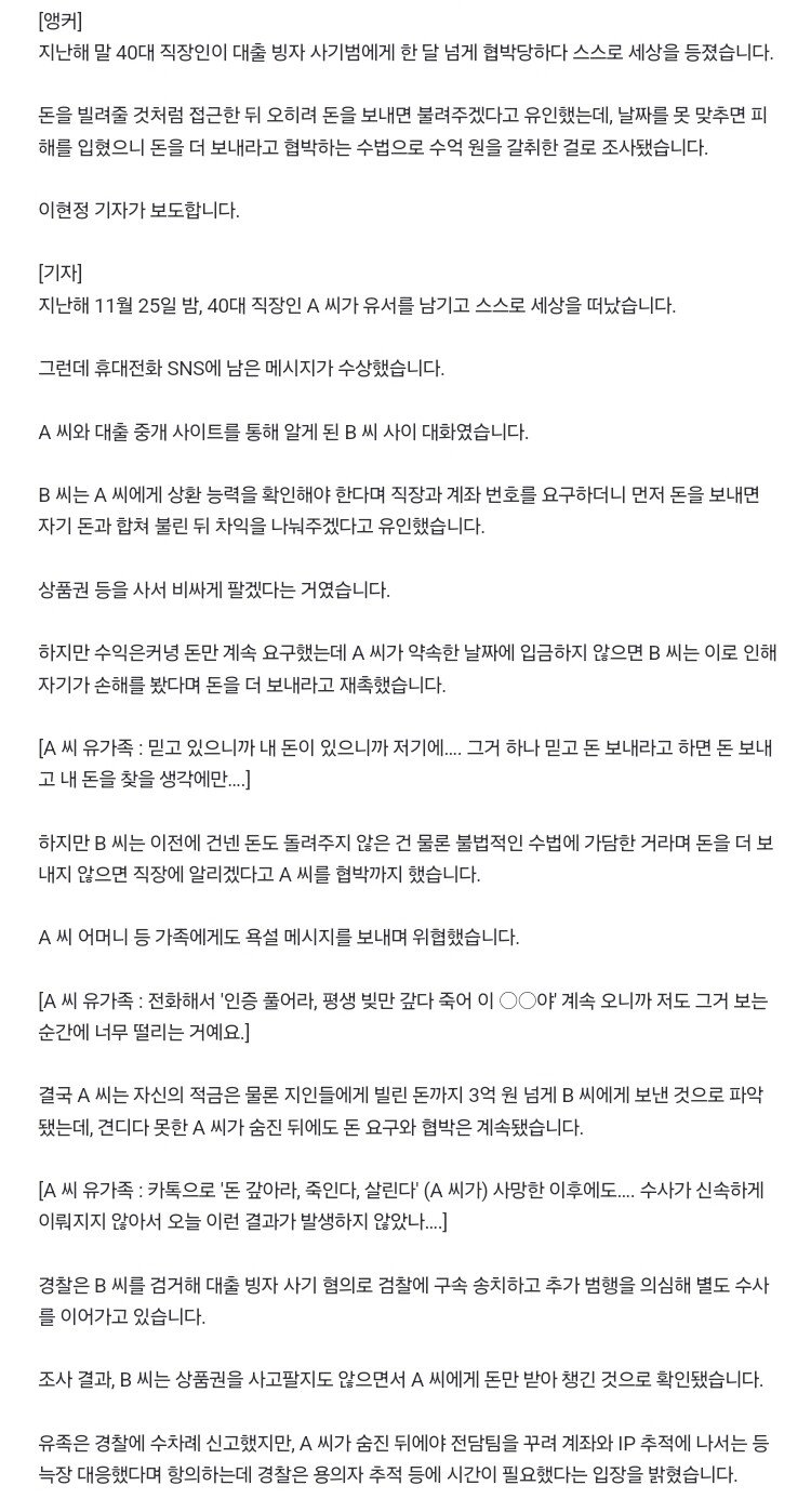 [단독] 죽음 내몬 대출빙자 사기...끝없이 "돈 보내라" 요구