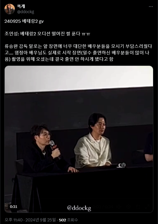 근데 결국 빠지긴 해서 오디션 떨어진 썰이라고 농담한 듯 ㅋㅋ