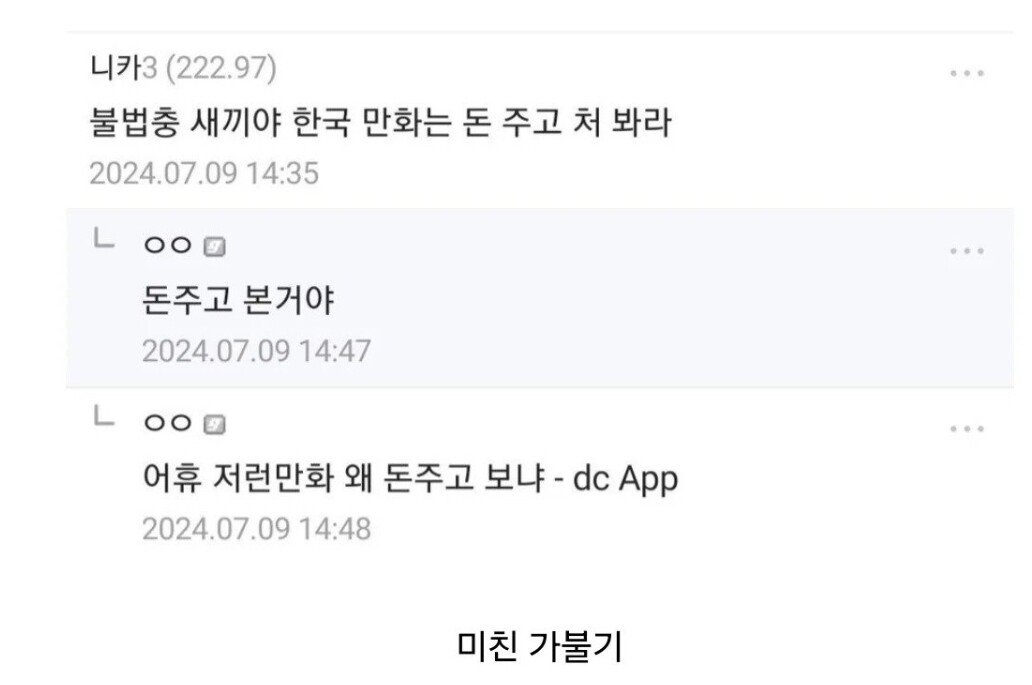 불법충 새끼야 만화 좀 돈주고 봐라