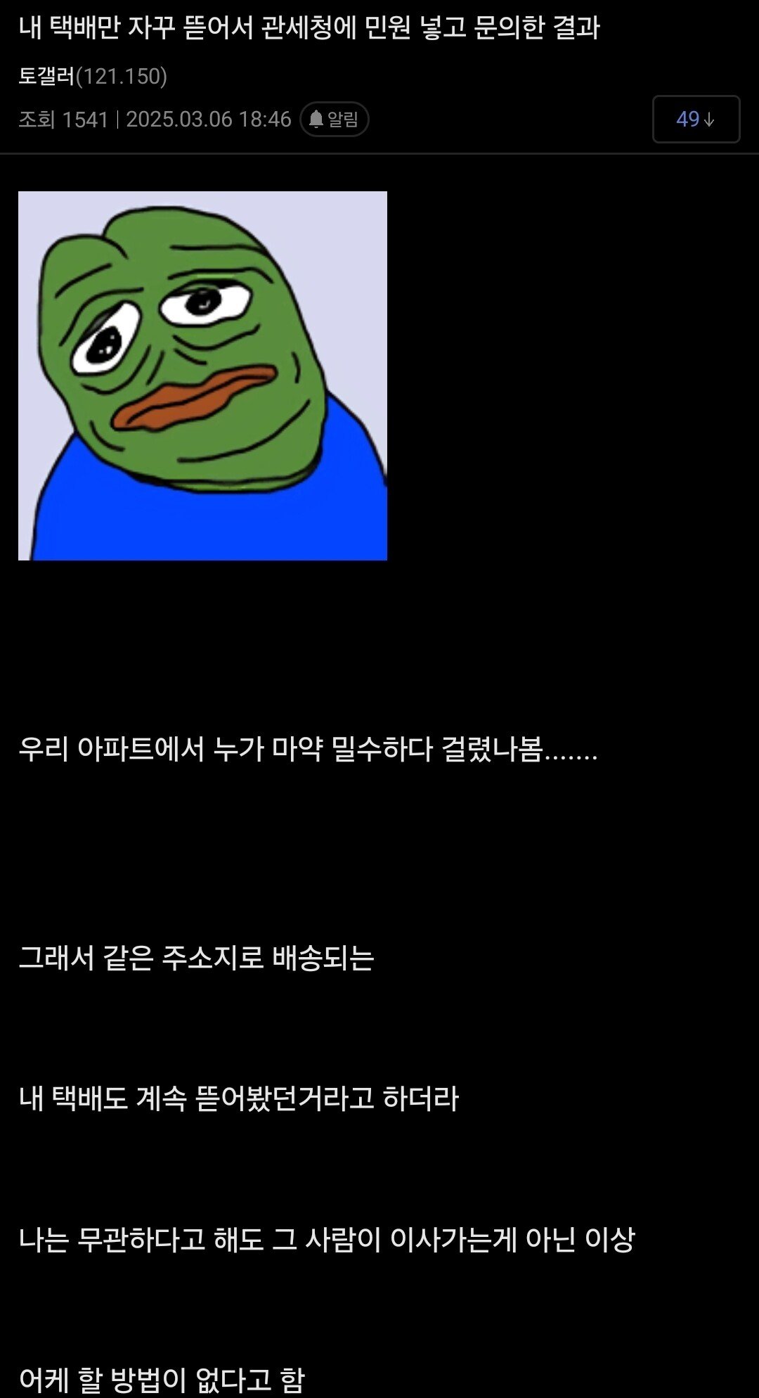 세관에서 계속 개봉검사당해서 문의해본 디시인