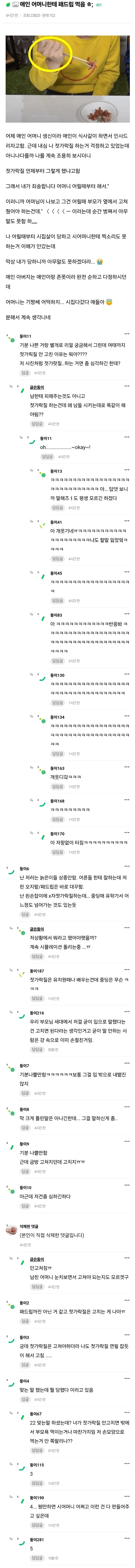 애인 어머니한테 찍소리도 못 하고 당한 여자