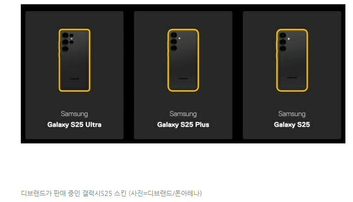 공개된 이미지는 액세서리 제조업체 디브랜드(dbrand)가 판매할 예정인 갤럭시S25 시리즈 스킨 제품 사진이다.