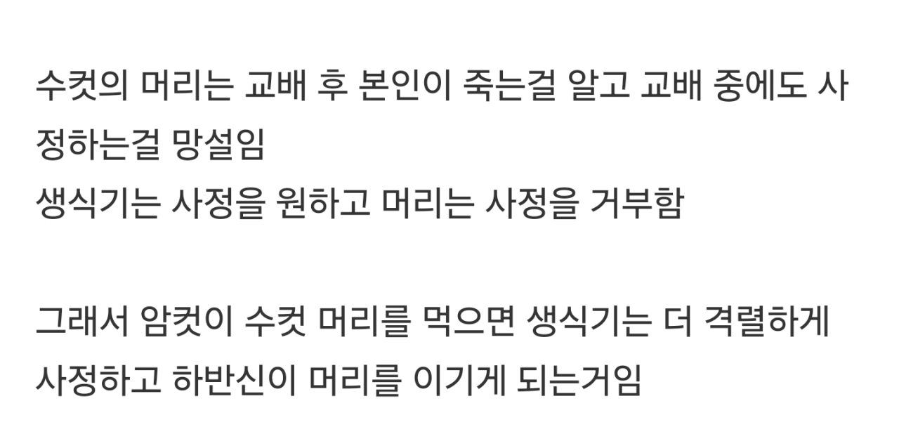 혐주의)암컷사마귀가 교배할때 수컷사마귀 머리부터 먹는 이유