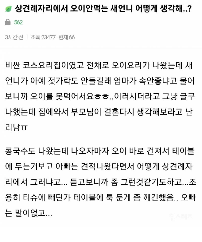 상견례 자리에서 부모님이 예비 새언니에게 화난 이유