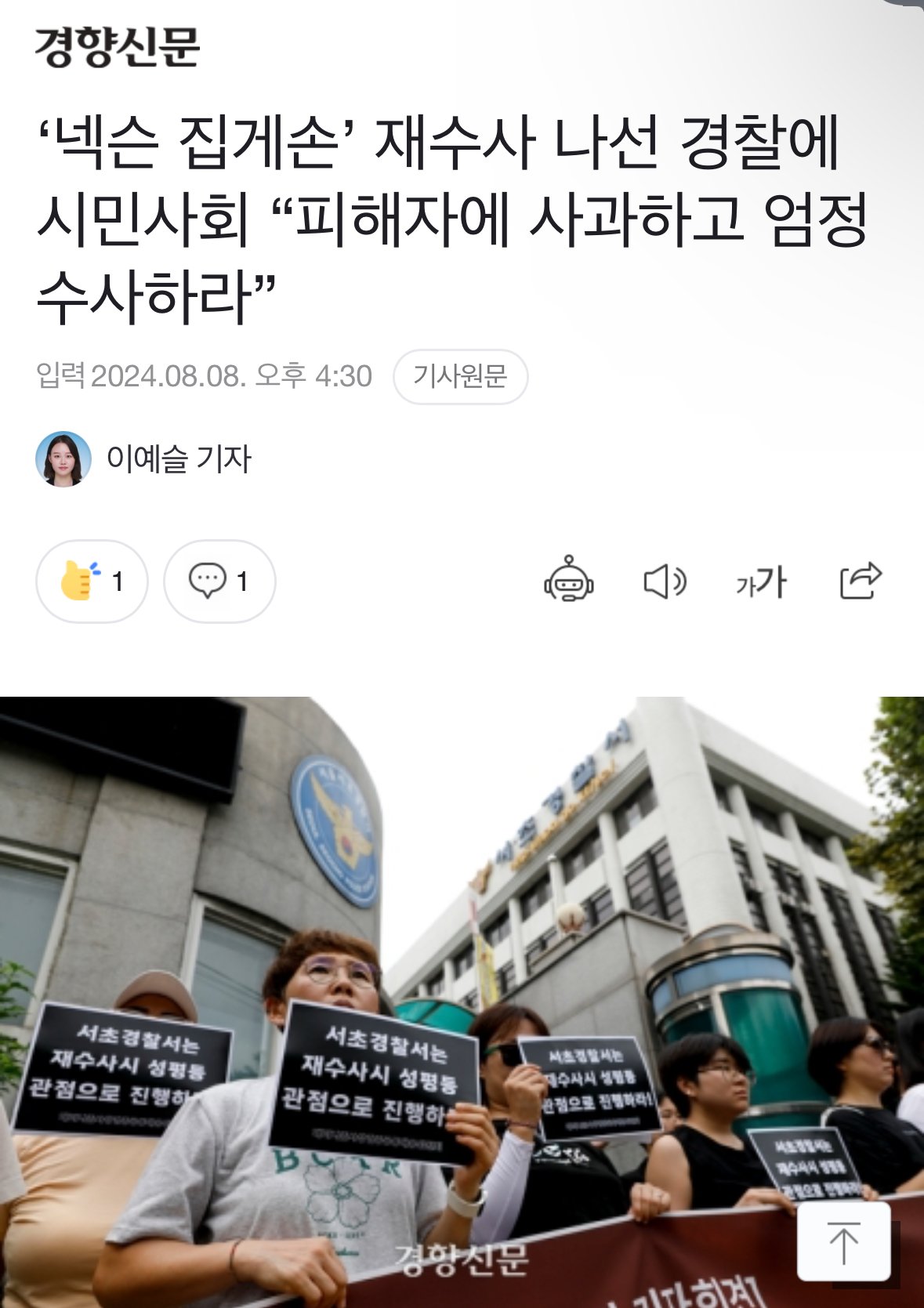 [경향] ‘넥슨 집게손’ 재수사 나선 경찰에 시민사회 “피해자에 사과하고 엄정 수사하라”