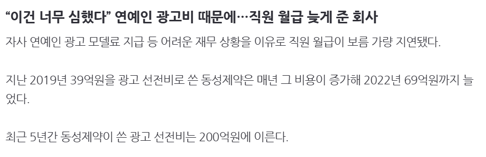 “이건 너무 심했다” 연예인 광고비 때문에…직원 월급 늦게 준 회사
