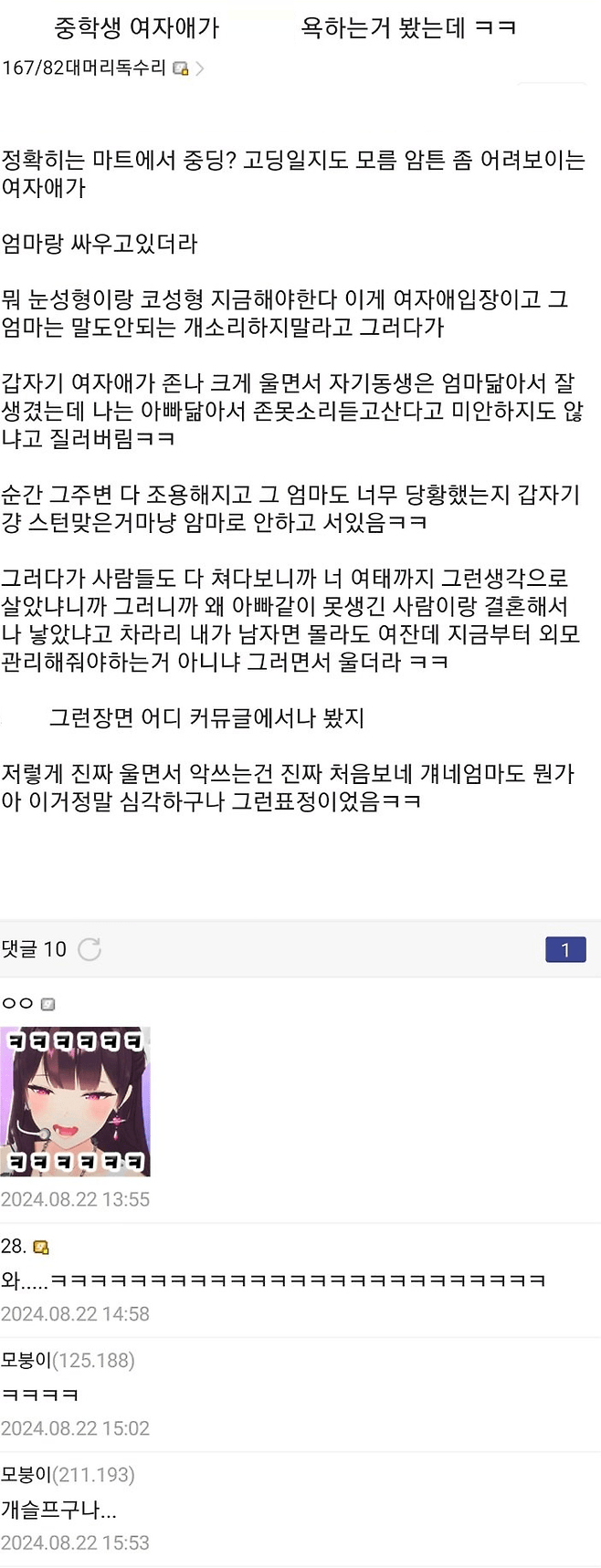 마트에서 자기 아빠 욕하면서 울던 중학생 여자 아이