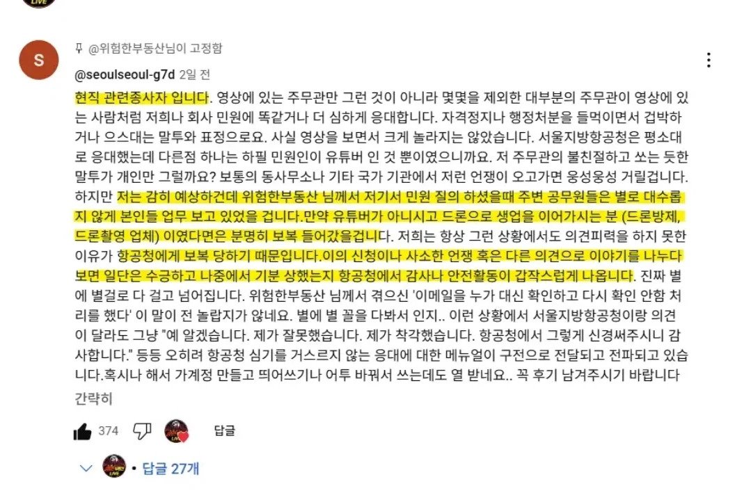 그리고 서울항공청 칭찬합시다 게시판은 활기가 돌고있다고합니다..