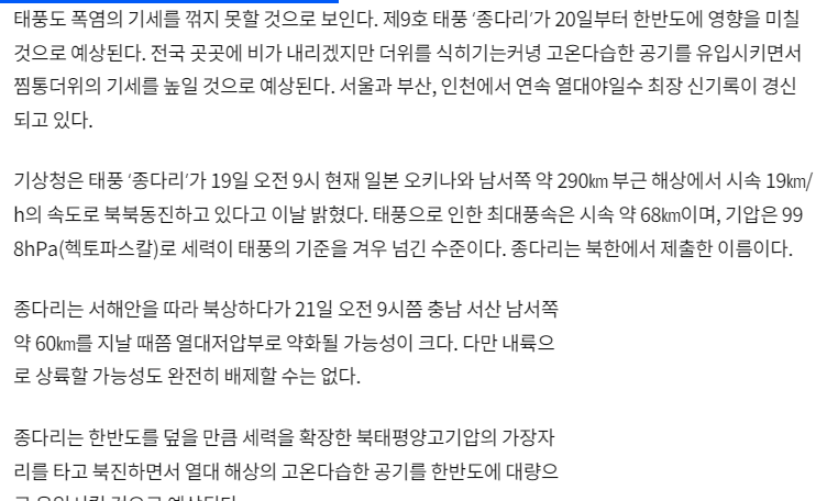 태풍 종다리 와도 더위 안끝난다?? ㄷㄷ