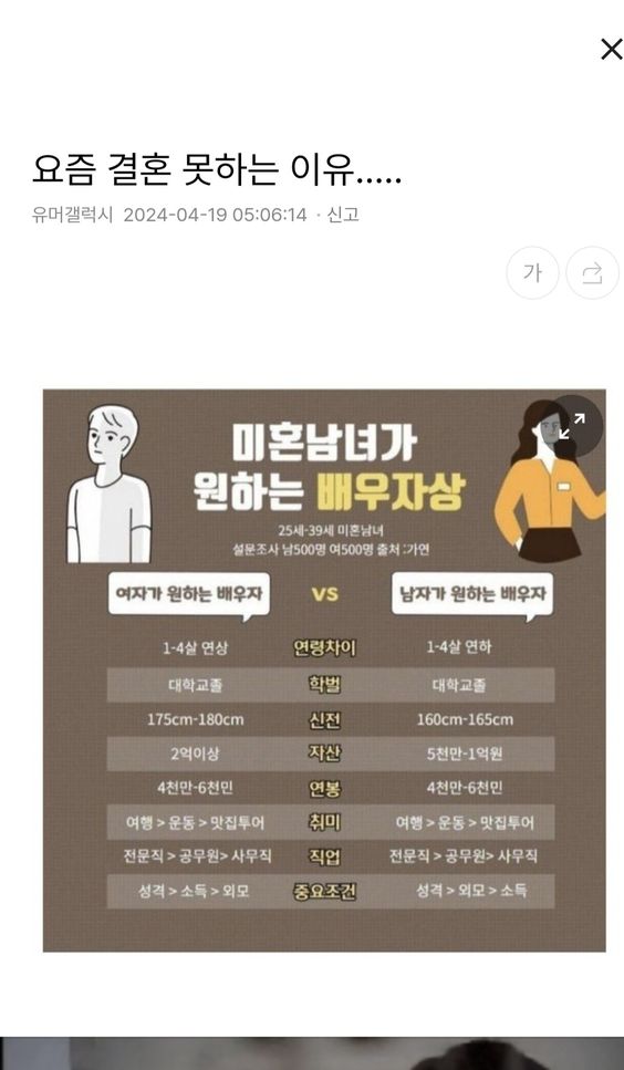 미혼남녀가 원하는 배우자상