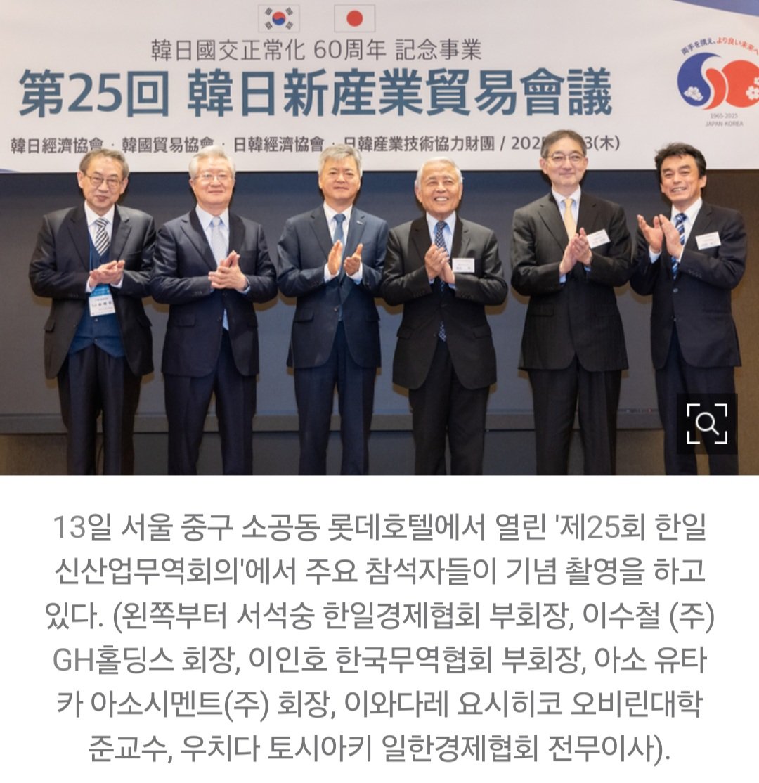 1999년 시작된 동 회의는 양국 경제계 주도로 최근 경제현안과 협력과제를 논의하고 산업 분야에서의 공동가치 창출 방안을 모색하는 자리다. 올해 회의는 '한일 국교 정상화 60주년, 더 넓고 더 깊은 한일 파트너십'을 주제로 열렸으며, 양국 정부·기업·기관·학계 관계자 70여명이 참석했다.