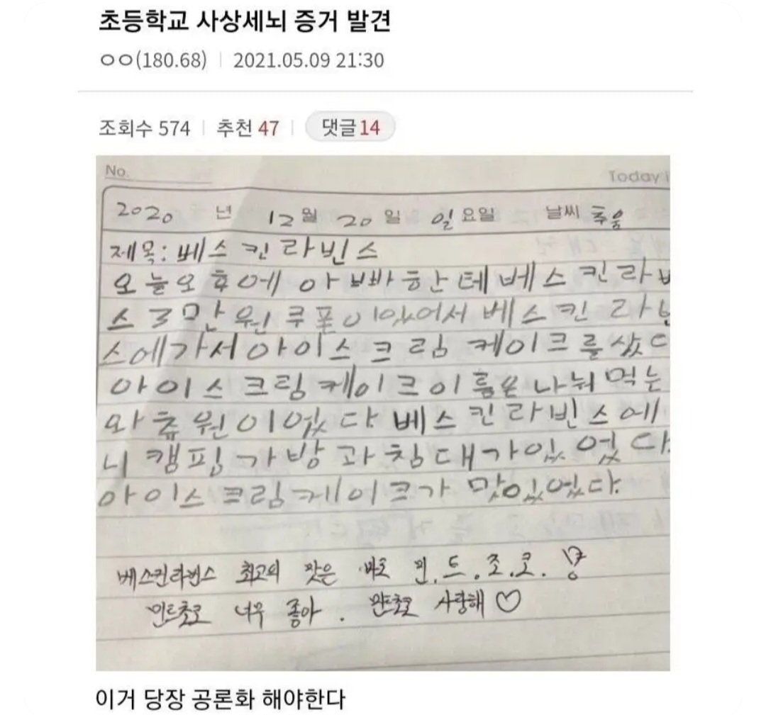초등학교 사상 주입 증거 발견