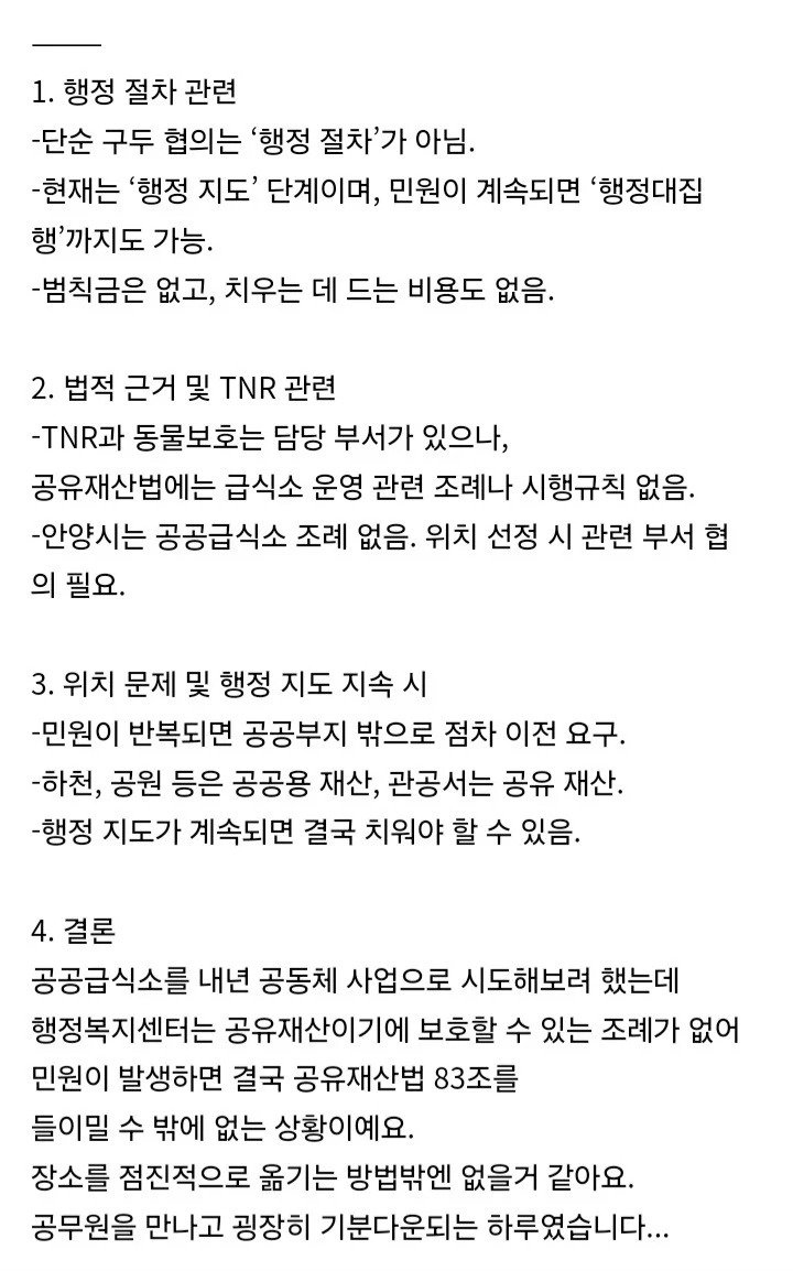 공유재산법 83조에 단또 급식소 설치 실패한 캣맘