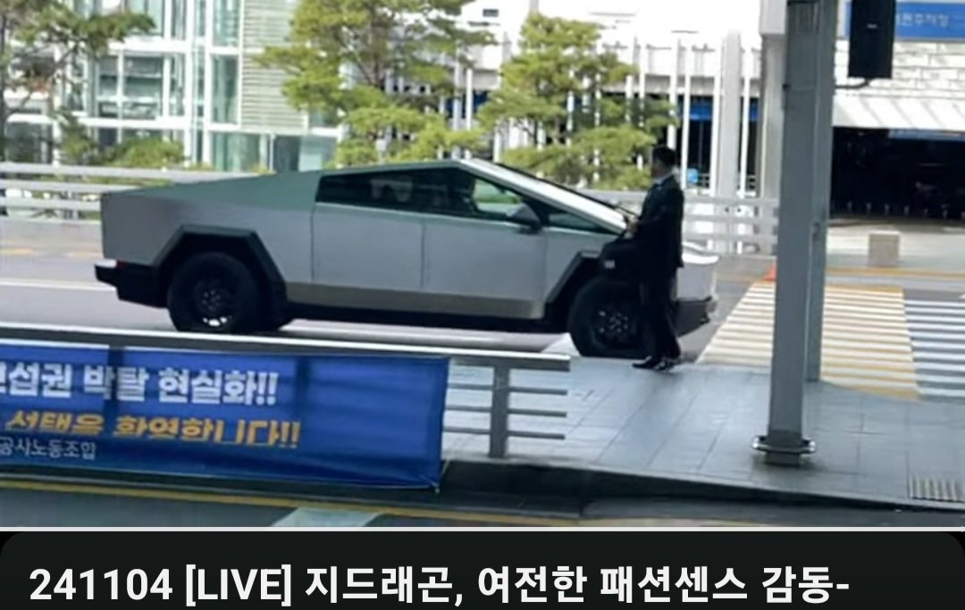 실시간 사이버트럭타고 공항에나타난 지드래곤 ㄷㄷ