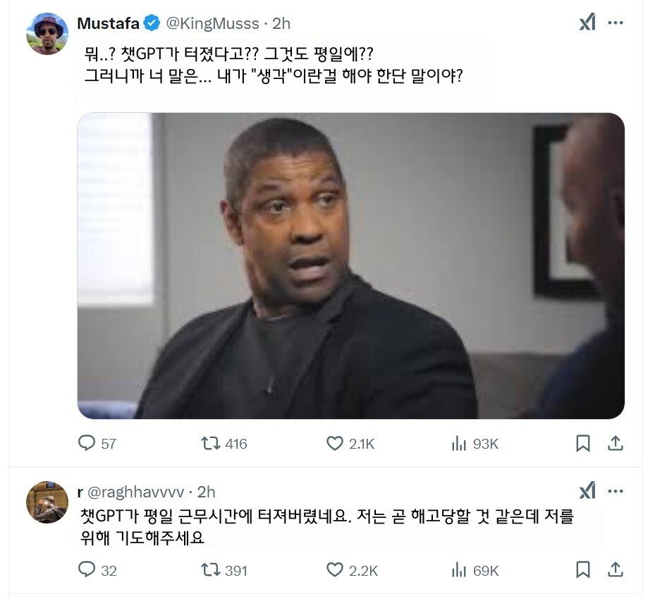 챗GPT 서버가 터지자 멘탈도 같이 터진 미국인들.x